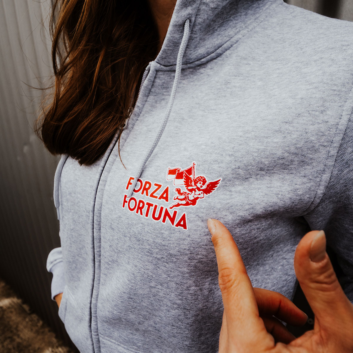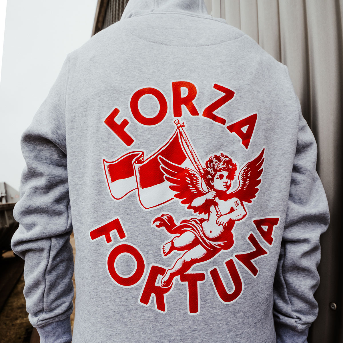 Schlagwörter: Engel, Forza Fortuna, Hoodie, Kapuzenjacke, rot-weiß, Sweatshirtjacke, Zipper